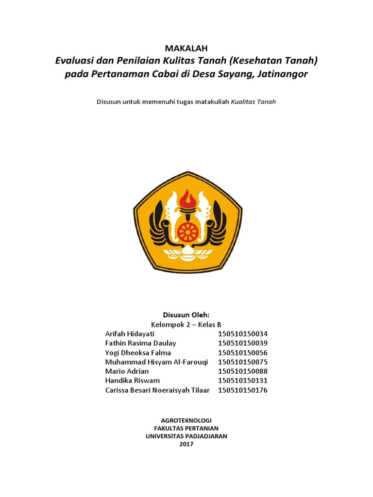 Pelayanan medik mandiri (self care and family medical care) = dilaksanakan pribadi/keluarga/kelompok masyarakat. Menyadari bahwa makalah ini masih jauh dari sempurna, oleh. Tahun 2009 nomor 144, tambahan lembaran. Ph tanah tanah font ph tanah hardjowigeno ph tanah reaksi tanah warna tanah hardjowigeno warna tanah. Keselamatan dan kesehatan dalam pembangunan kapal dan perbaikan kapal. Kacang tanah yang kami amati dari hari kehari. Kesehatan dan keselamatan dalam pembangunan dan perbaikan kapal. Pemahaman tentang kesehatan telah bergeser seiring dengan waktu. Diajukan untuk memenuhi salah satu tugas mata kuliah kesuburan tanah dan nutrisi tanaman mengenai pembentukan tanah entisol yang disusun oleh: Standar baku mutu kesehatan lingkungan dan persyaratan kesehatan air dengan rahmat tuhan yang maha esa. @inproceedings{nugroho2019sistempk, title={sistem pendukung keputusan penilaian kesehatan tanah dengan metode simple additive weighting}, author={a. Di dalam tanah terdapat banyak jasad hidup (organisme tanah) yang kalau dipelihara dengan baik, dapat mempertahankan kesehatan tanah. Pada tanah tersebut, permukaan jalan sangat mudah berubah karena faktor air, sehingga di musim hujan banyak ruasruas jalan yang rusak berat dan tidak dapat dilewati kendaraan bermotor dan di.